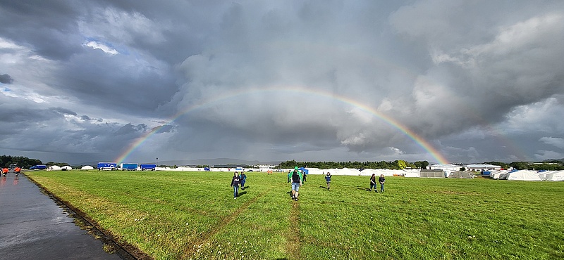 Der nächste Morgen beginnt dann für alle sehr früh mit dem Zelte abbauen. Für alle? Nein! Ein Bundesland weit im Südwesten der Republik lässt sich von dem emsigen Treiben nicht beirren. Dort gehen die Junghelfer:innen wie jeden Morgen erst einmal wie gewohnt zum Frühstück und danach sind die Zelte in Windeseile abgebaut und um 12:00 Uhr ist auch dort der Zeltplatz wie leergefegt.