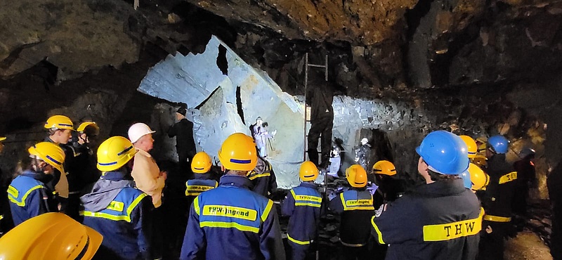 Auch in den kommenden Tagen geht es für die Junghelfer:innen und ihre Betreuer immer wieder unter die Erde. Am Dienstag mit einer Führung durch die verwinkelten Gänge und Schächte, hinab in die Tiefen der Burg Rheinfels. In diesem Sommer kann aufgrund von Baumaßnahmen allerdings nur ein Teil der Anlage besichtigt werden. Die Erkundung der kühlen Gänge auf eigene Faust muss zur Enttäuschung aller ausfallen. Gerne hätten alle länger Schutz vor der sengenden Sonne gesucht. Dafür entschädigt wiederum beim Mittagessen auf dem Rastplatz hoch über dem Rhein der grandiose Ausblick auf das Flusstal und die gegenüber liegende Lorelei .