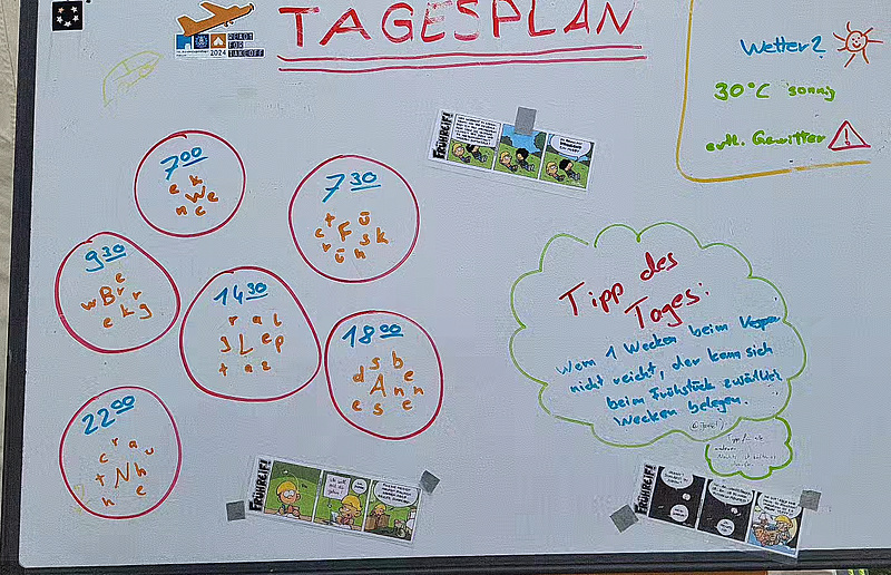 Hungrig von dem langen und anstrengenden Tag gibt es für die Junghelfer:innen aus Kirchheim unter Teck die erste Überraschung. Sie verpassen leider das Abendessen im Zeltlager, aber großes Bedauern macht sich trotz Hunger keines breit, denn längst hat sich das Essen im Lager mit veganem Tofu teriyaki mit Reis herumgesprochen. So müssen die Kirchheimer Jugendlichen heute „leider“ auswärts in der „Kartoffelkiste“ mitten in Trier Schnitzel mit Pommes essen. Nach dieser Ansage gibt es vor Freude und Erleichterung kein Halten mehr. Trotzdem benehmen sich alle gesittet und anständig, dass es im Nachhinein ein großes Lob der Gastwirte an die Betreuer und für alle Junghelfer:innen ein Eis zum Nachtisch gibt.