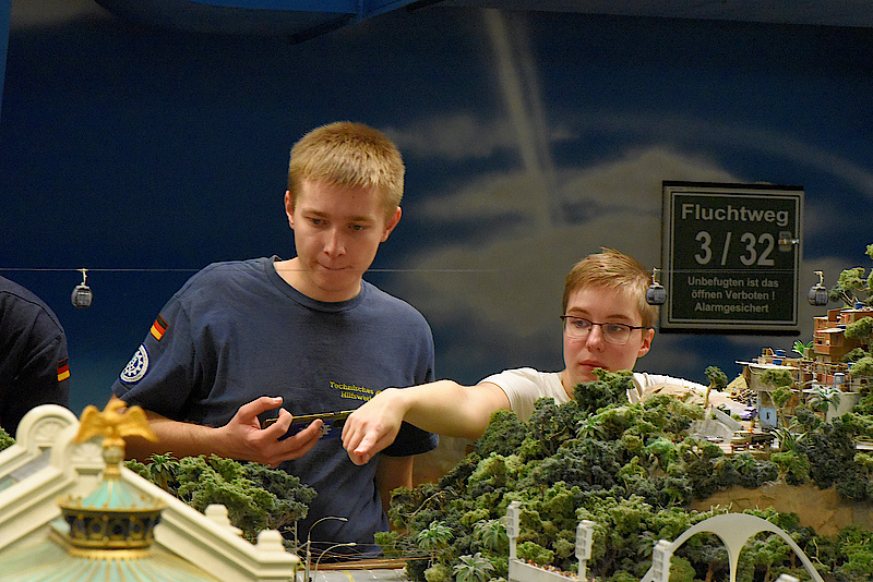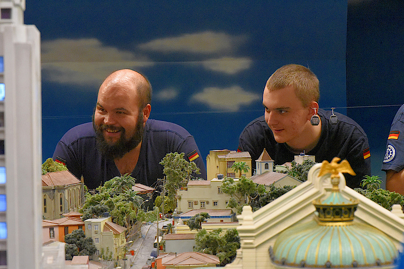 Aber dann ist es endlich soweit, um 16:30Uhr dürfen wir sogar eine halbe Stunde früher als gedacht endlich in das Miniatur-Wunderland. Die Welt in klein begeistert nicht nur die Junghelfer:innen, auch die Betreuer:innen zeigen ihre Begeisterung. An jeder Ecke gibt es was zu sehen, überall sind kleine lustige Szenen zu finden. Erst nach etlichen Stunden können sich auch die Letzten von der kleinen Welt verabschieden und kehren müde und erschöpft ins nahegelegene Hotel zurück.