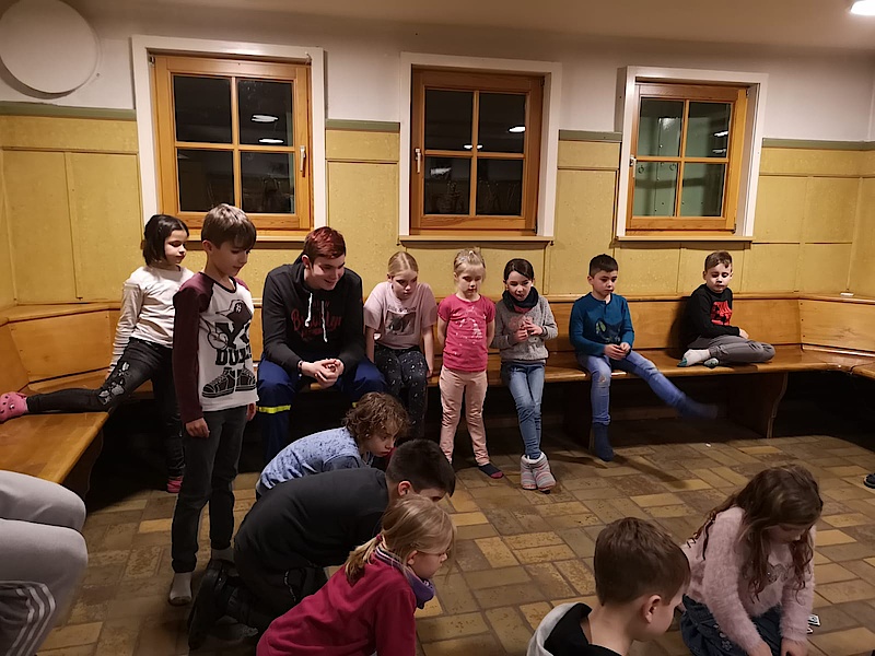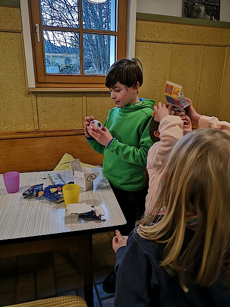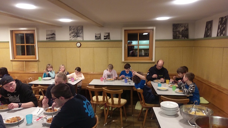 Aber leider liegt auch auf der früher so schneesicheren Schwäbischen Alb in diesem Jahr wieder mal nicht genügend Schnee zum Schlittenfahren. Doch schon auf der Anfahrt entdecken die wachsamen Minis einige Ecken und Winkel wo der heiß begehrte Schnee liegt.  Zwar nicht genug zum Schlitten fahren aber genügend für eine ordentliche Schneeballschlacht. Zuerst aber müssen  die Zimmer bezogen werden.  Mit der Aussicht auf ein zünftiges Abendessen mit Würstchen und Kartoffelsalat ist das jedoch schnell erledigt. Direkt danach ruft Betreuer Alex alle zusammen in den Gemeinschaftsraum, das versprochene Spiel „Schlag die Jugendbetreuer“ muss leider ausfallen. Diese hätten aber auch aufgrund der offensichtlichen Übermacht eh keine Chance gehabt hierbei zu punkten. Stattdessen spielen 4 Teams zusammen mit jeweils 1 Betreuer gegen alle anderen. Nach über 2 Stunden voller Geschicklichkeits-, Ausdauer- und Fragespiele halten die Gewinner ihren wohl verdienten Preis, eine Prinzenrolle in Händen. Ob diese wohl die Nacht überlebt?