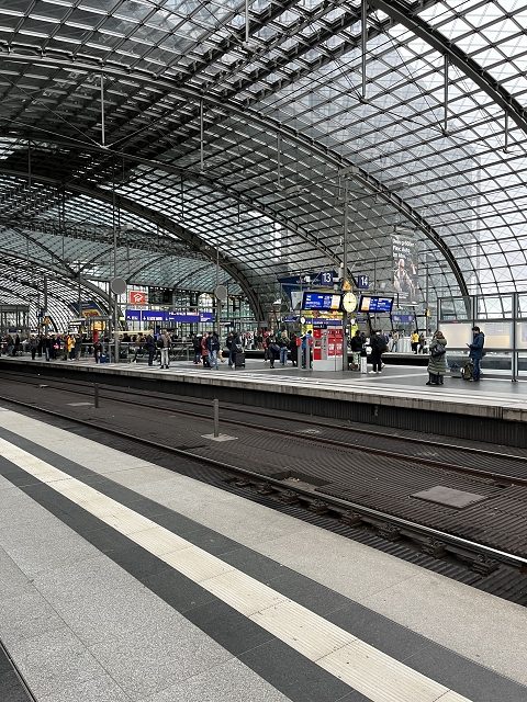 Auch dieses mal setzte die Kirchheimer Gruppe auf die Bahn. Am Montagmorgen trafen sich alle pünktlich um 6:50 Uhr am Kirchheimer Bahnhof, manche ausgeschlafen, während andere sicher selbst zu Schulzeiten noch im Bett liegen würden. Nach den obligatorischen Formalitäten und der Begrüßung durch die Betreuer hieß es: Einsteigen! Trotz ausgefallener S-Bahnen – wie es sich für einen Montag gehört – schafften wir es bis nach Wendlingen. Die Busfahrt, bei der sich folglich Personen aus gleich drei S-Bahn-Waggons in einen Bus drängten, war zwar abenteuerlich, doch danach ging es entspannt weiter. In Stuttgart bestiegen die Kirchheimer den ICE nach Berlin. Die fünfeinhalbstündige Fahrt bot reichlich Zeit für Gespräche, Kartenspiele und die neugierige Erkundung des 11-teiligen Zuges. Natürlich war auch das Bordrestaurant wieder ein beliebter Treffpunkt.