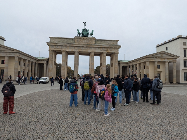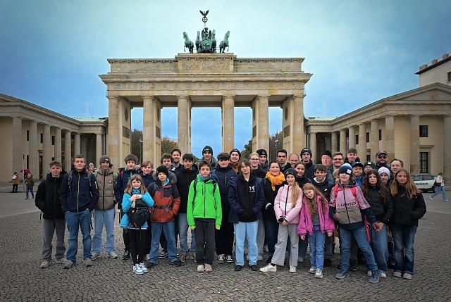 Am nächsten Morgen startete die Stadtführung durch das historische Berlin, erneut am Brandenburger Tor. Über die Geschichte der Siegesgöttin Victoria und den Verlauf der Berliner Mauer während der deutschen Teilung führte der Weg zum Denkmal für die ermordeten Juden Europas. Die 2711 Betonstelen erinnerten eindrucksvoll an die Schrecken der Vergangenheit. An einem unscheinbar wirkenden Parkplatz erklärte der Tourguide, dass sich darunter einst der sogenannte Führerbunker befand, heute kaum vorstellbar, jetzt wo sich wieder das ganz alltägliche Leben abspielt. Weiter ging es zu den Überresten der Berliner Mauer, die trotz aller Sicherungsmaßnahmen nicht jede Flucht verhindern konnte. Wie sonst nur in einem Film gelang es beispielsweise einer Familie, mit einer selbstgebauten Seilbahn die Mauer zu überwinden, berichtete der Guide.